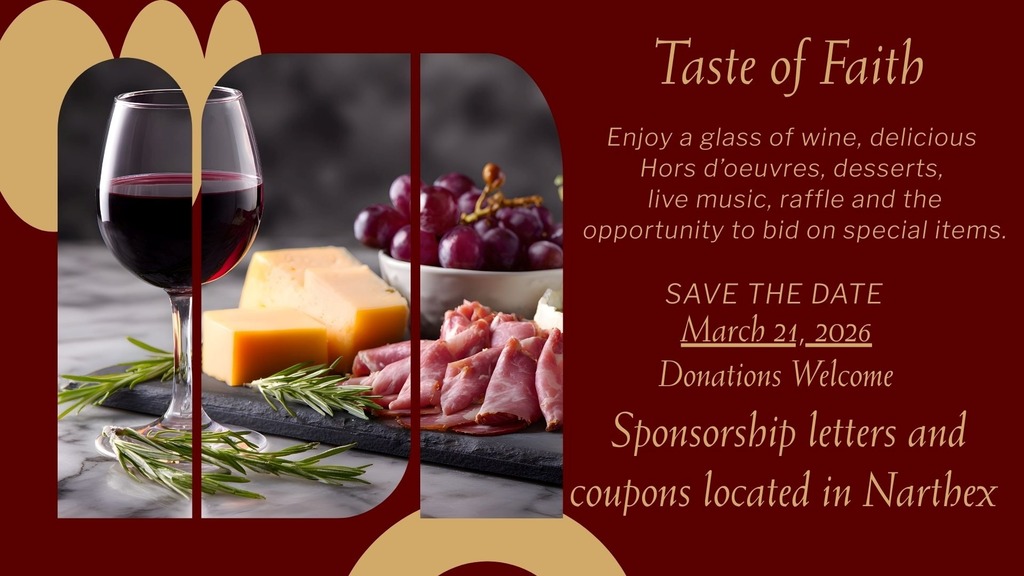 Event Details A Taste of Faith - School Auction Mar 21, 2026 at 6:00pm Faith Events Mar 8 Bible Studies 8:15am | Faith Lutheran Church and School Mar 8 Worship Service 9:30am | Sanctuary Mar 11 Worship - Lenten service 6:30pm | Mar 15 Bible Studies 8:15am | Faith Lutheran Church and School Mar 15 Worship Service 9:30am | Sanctuary Go To Calendar